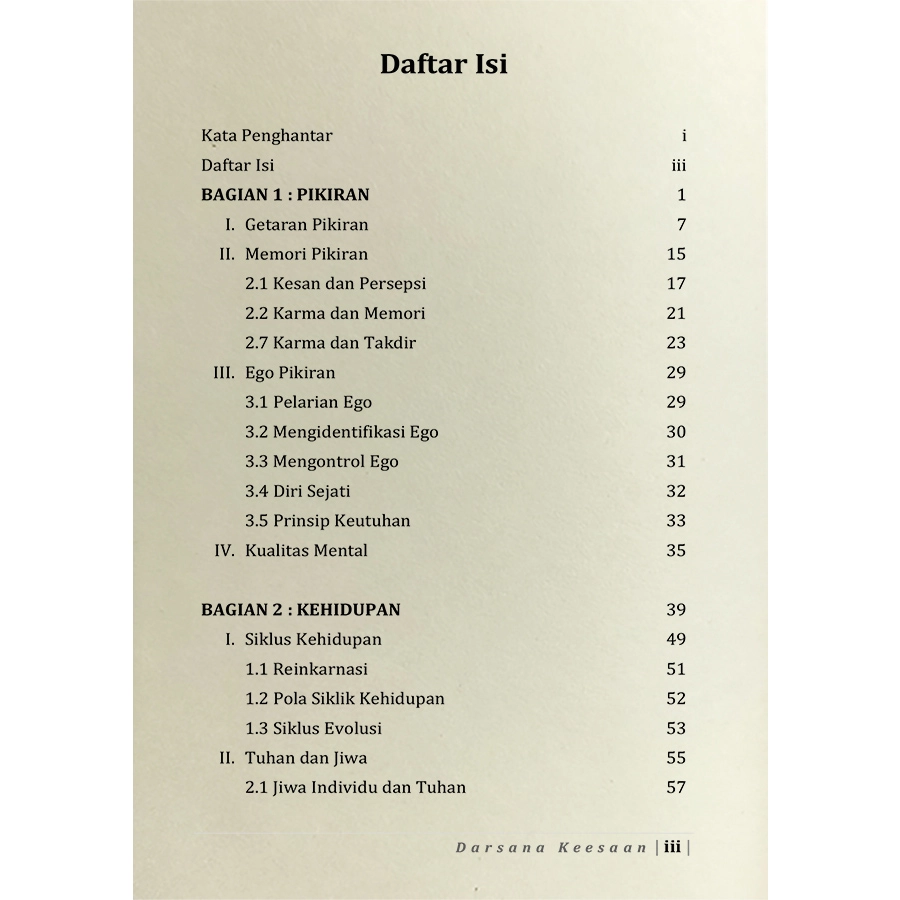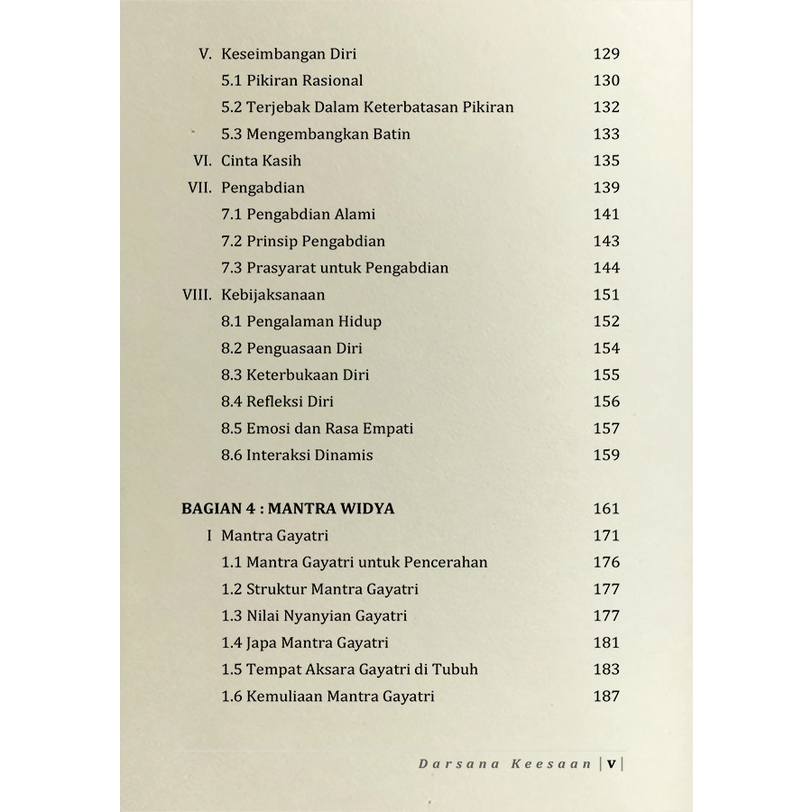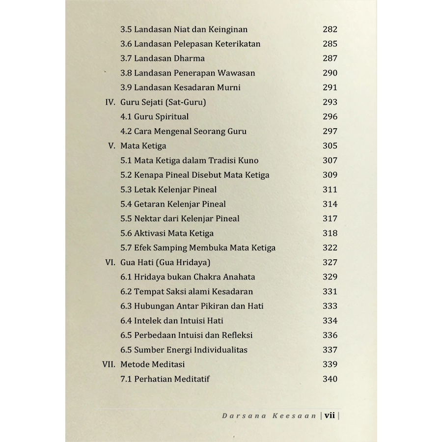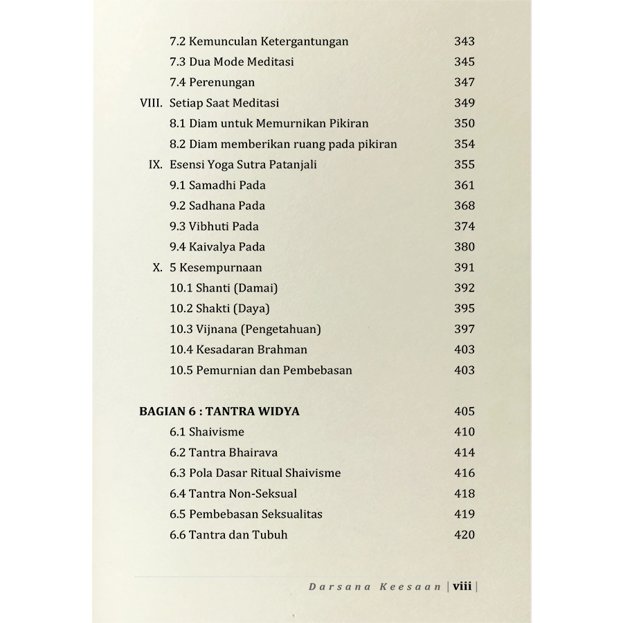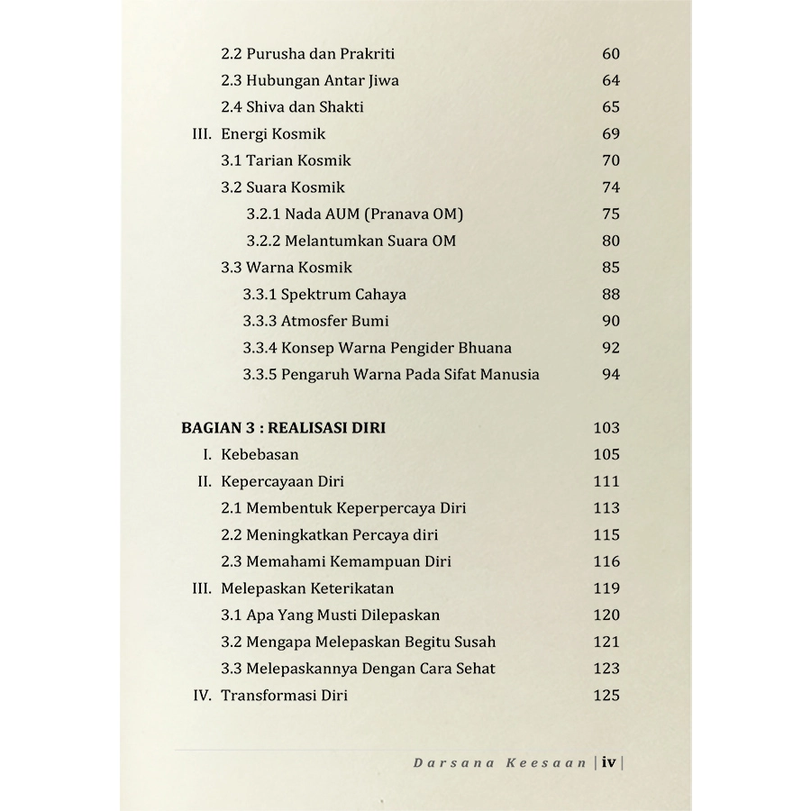 Buku Darsana Keesaan ini adalah upaya untuk menjaga tradisi yang berharga agar tetap hidup dan untuk menyebarkan pesan spiritual lebih jauh ke dalam batin pembaca. Melalui latihan, buku ini juga untuk mengembangkan kesehatan tubuh, ketenangan pikiran dan stabilitas mental, kejernihan intelektual dan pengetahuan kesadaran spiritual yang lebih mendalam.