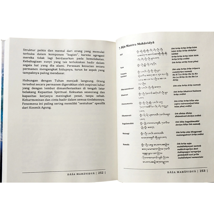 Dasa Mahavidya berarti 'Sepuluh Pengetahuan Agung'. Mereka mengungkapkan cara kerja batin dari alam semesta dan jiwa, setelah tabir penampilan ditarik ke bawah, mereka mewakili kebenaran kehidupan yang lebih dalam yang tersembunyi di balik keterikatan kita pada bentuk luar benda. Pesan mereka terkadang menginspirasi dan terkadang menakutkan karena mereka mewakili kehidupan itu sendiri, tetapi mereka selalu memberi pelajaran bagi mereka yang mencari sesuatu di luar dunia biasa.